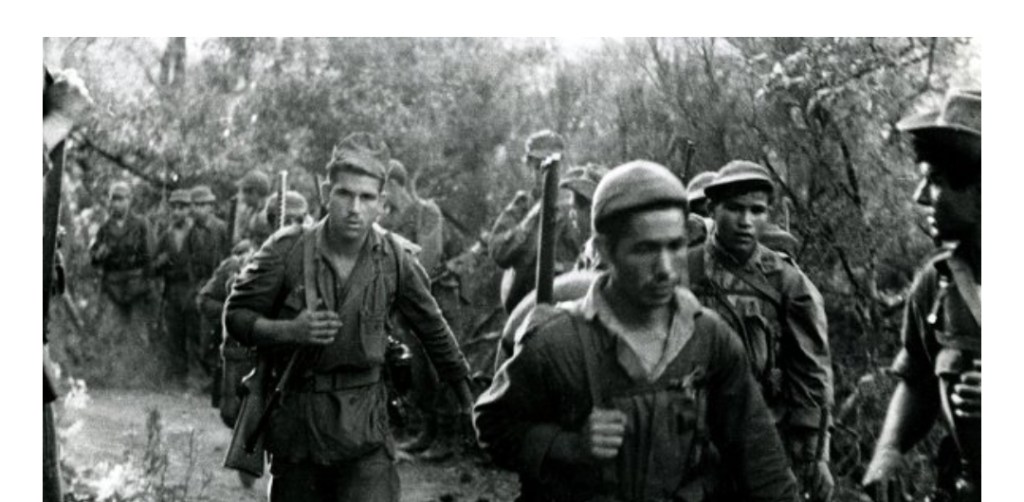 À 150 km de Tunis, 50 km avant d’atteindre la frontière algérienne, vous apercevez déjà l’importance de l’ALN : une théorie presque ininterrompue de camions Mercedes, venant de Libye, sombres comme la guerre, réguliers comme un fleuve au printemps, amènent à travers la Tunisie armes, munitions, ravitaillement. Ils sont immatriculés au nom de la République algérienne et ils charrient leur chargement au flanc du djebel qui sépare la Tunisie de l’Algérie.